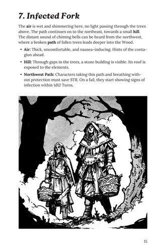CAS-3: The Feast of Tegny Wood is a standalone Cairn Second Edition adventure of disease, duty, and decay, set in a haunted corner of Vald. During the holiday of Bartermoot, traders and Woodfolk meet in uneasy peace.