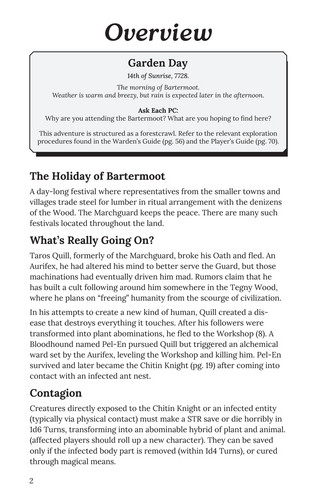 Yet beneath the revelry, something dark stirs. Deep in Tegny Wood, an alchemist’s failed experiment has festered into an infection that twists flesh and soil into a grotesque parody of life. Meanwhile, something even more terrible is rising in the Wood, and growing ever closer...